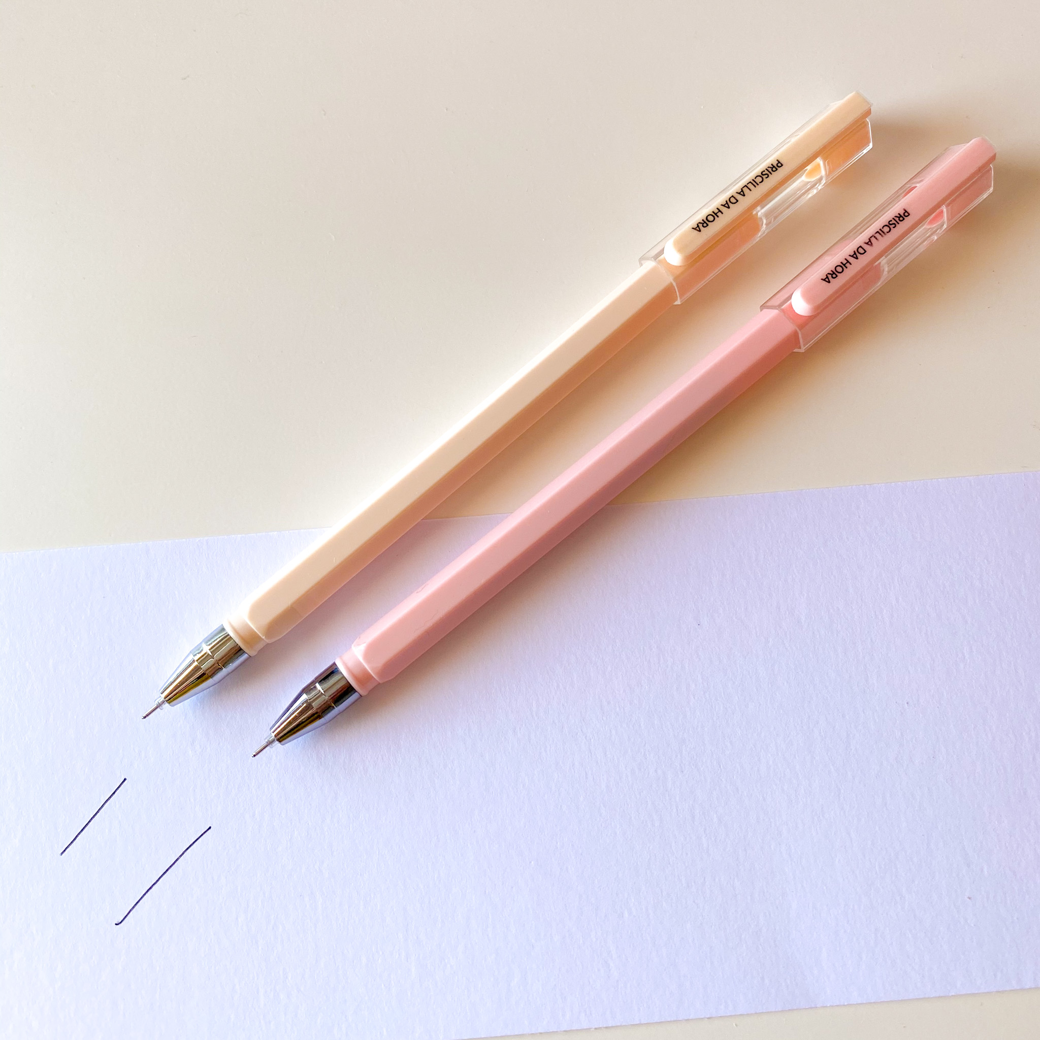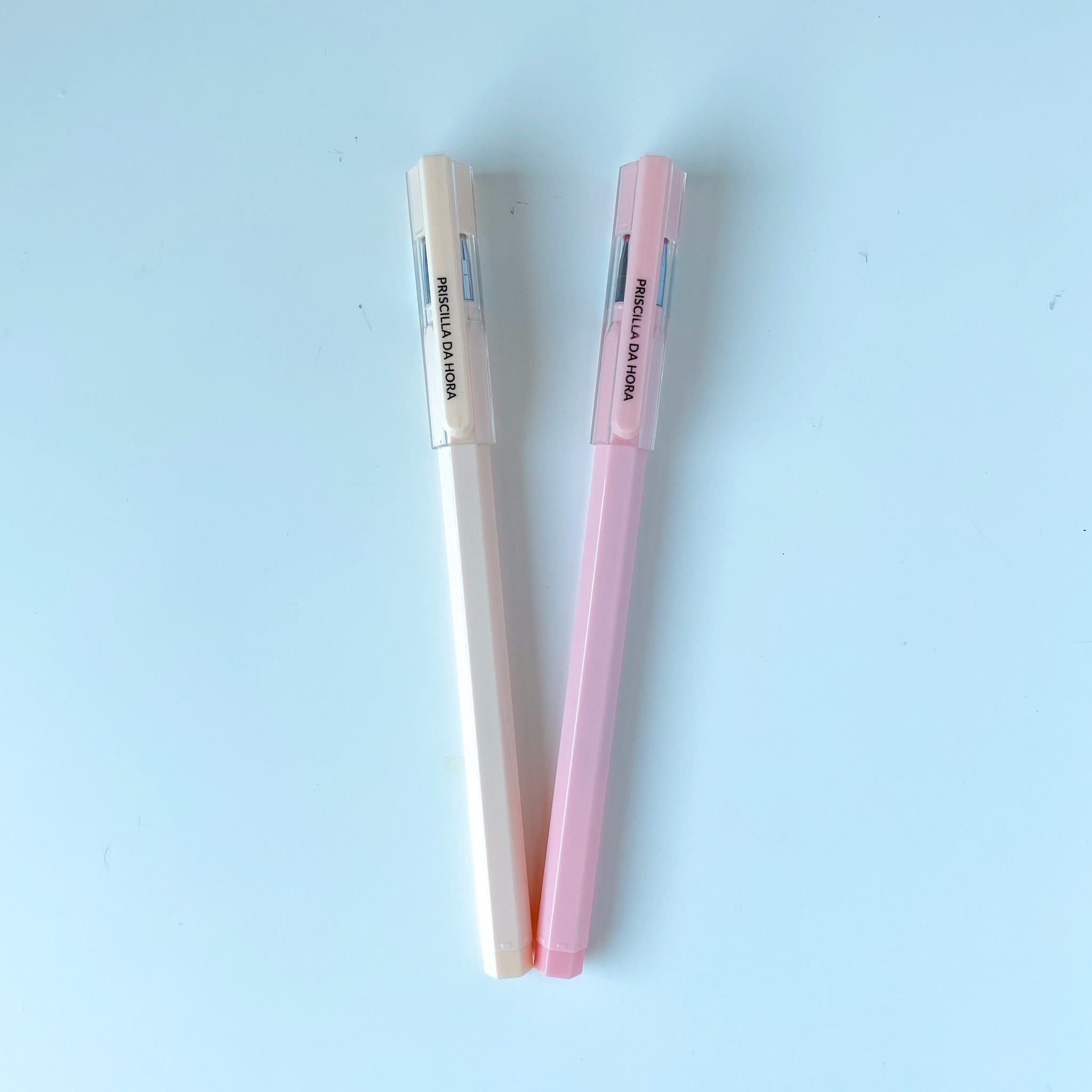 Conjunto de 2 canetas com corpo sextavado nas cores creme e rosa claro. São daquele tipo de caneta que escreve até última gota. E o melhor? Mesmo que a tinta acabe, você não irá perder suas canetas. pode trocar a carga da tinta. Sim! Pensamos nisso para você. Você já pode garantí-las aqui.